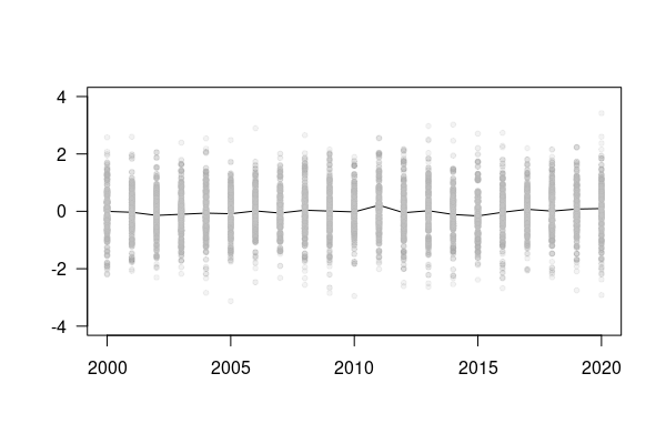 # points(DF$year, DF[, i], pch=20, cex=1, col=rgb(.8, .8, .8, 1 - normalize(abs(DF[, i]))))