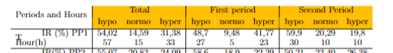 \multirow{2}{3em} TIR (\%) PP1 & 54,02 & 14,59 & 31,38 &48,7 &9,48&41,77&59,9&20,29&19,8\\