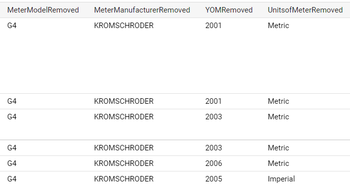 AND MeterManufacturerRemoved = 'KROMSCHRODER'