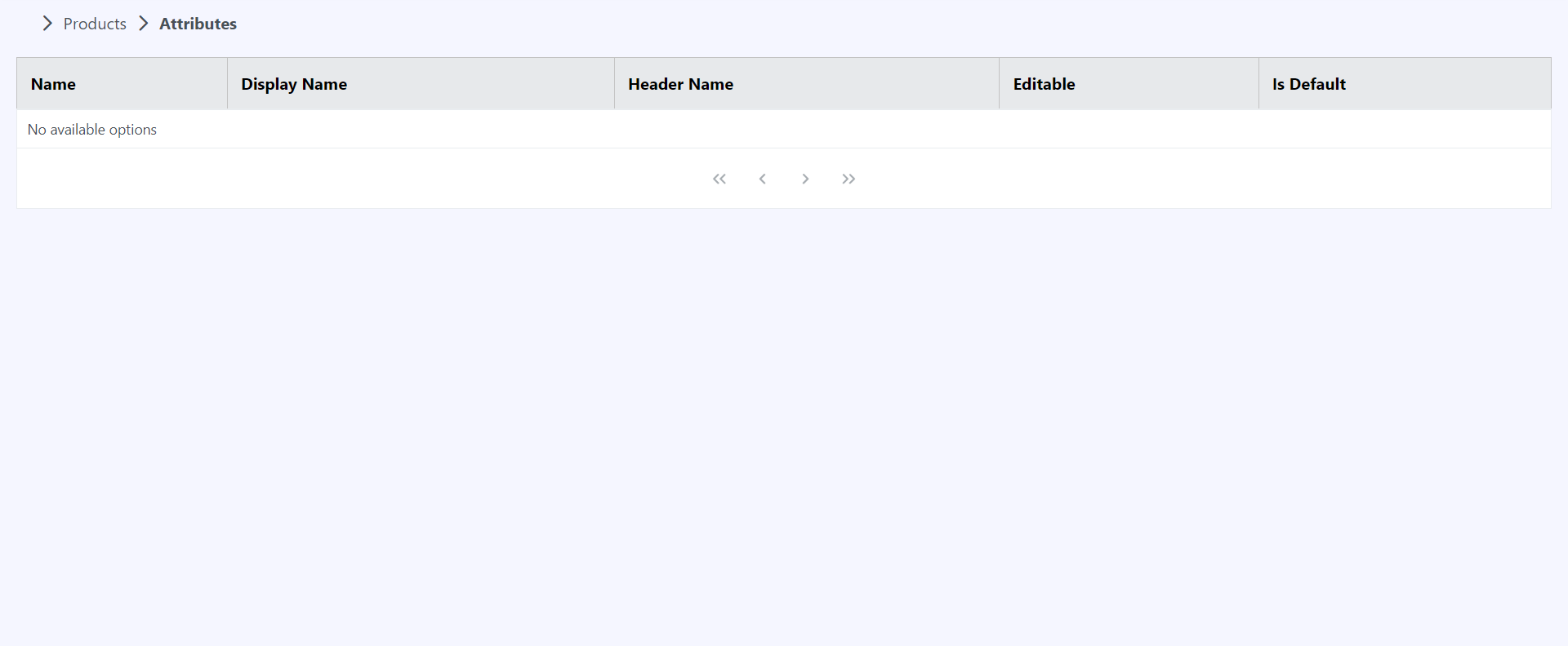 <DataTable value={attributes}