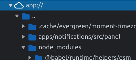 app:///node_modules/dir/to/package/index.js对于这些应用程序,我还在app://的Debugger选项卡中,在Sources下面看到了实际的树