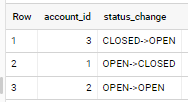 union all select date('2020-08-01') as date, 555 as account_id, 'CLOSED' as account_status,