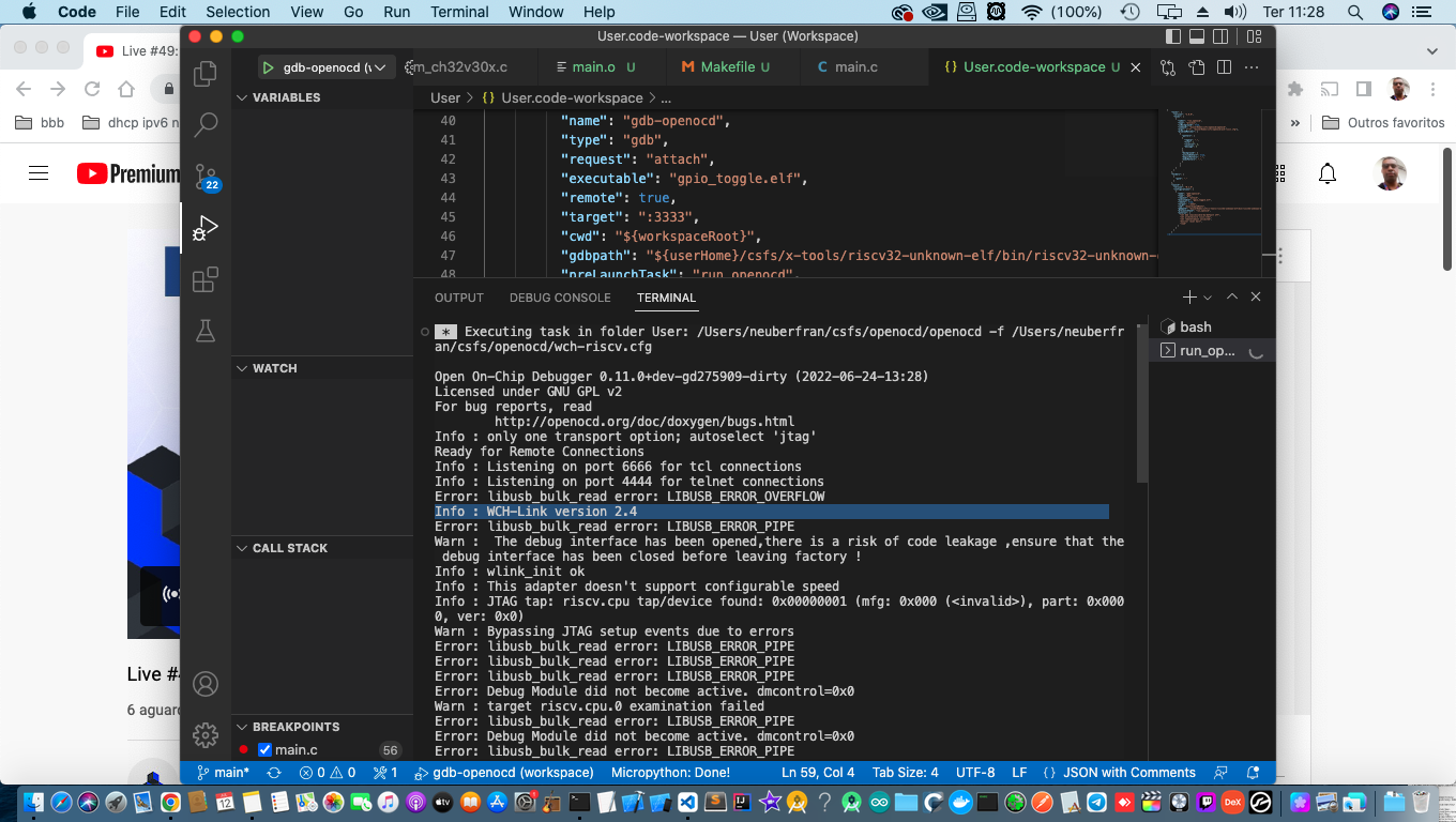 我一直在尝试:https://nc-pin.com/index.php/category/wch/ch32v-series/ch32v307/ 在macOS上用Visual代码调试CH32V307V