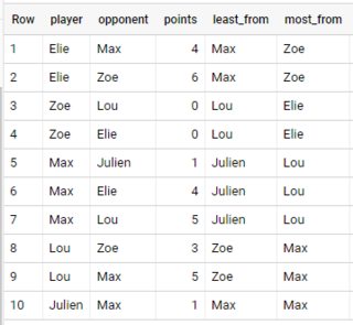 WINDOW w AS (PARTITION BY player ORDER BY SUM(point) ROWS BETWEEN UNBOUNDED PRECEDING AND UNBOUNDED FOLLOWING)