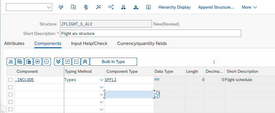 INSERT scheduled_flight INTO sflight.因此,通常不需要在字典中声明这样的结构,因为它已经通过创建表隐式地存在了。