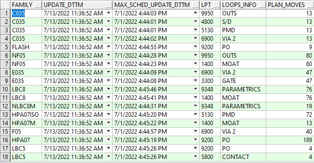 我有我的SQL查询,它显示了所有需要的数据,但是我需要帮助获得一个特定的输出。我需要使用下面的查询显示一个标有循环(不在海量查询中)、LPT和SUM of PLAN_MOVES的列。我可以在Plan_Moves上进行选择和,并将其标记为Target_Daily_Moves,但不确定如何显示其他两列。请帮助我,因为我仍然在学习SQL。