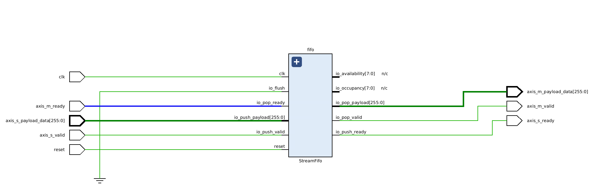 val fifo = StreamFifo(dataType = Bits(256 bits), depth = 128)