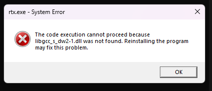 有4个弹出窗口,其中2个是这个,另一个是libstdc++-6.dll。