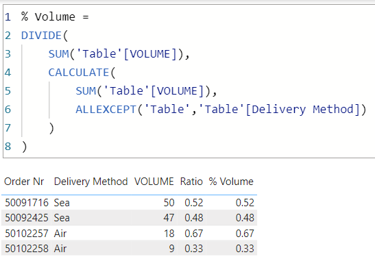 Delivery Method Order Nr VOLUME Ratio