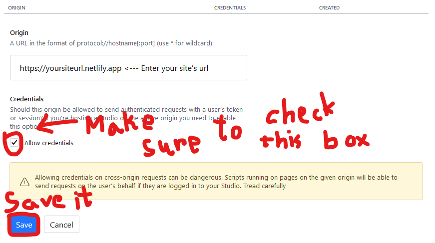 点击“添加CORS原产地”