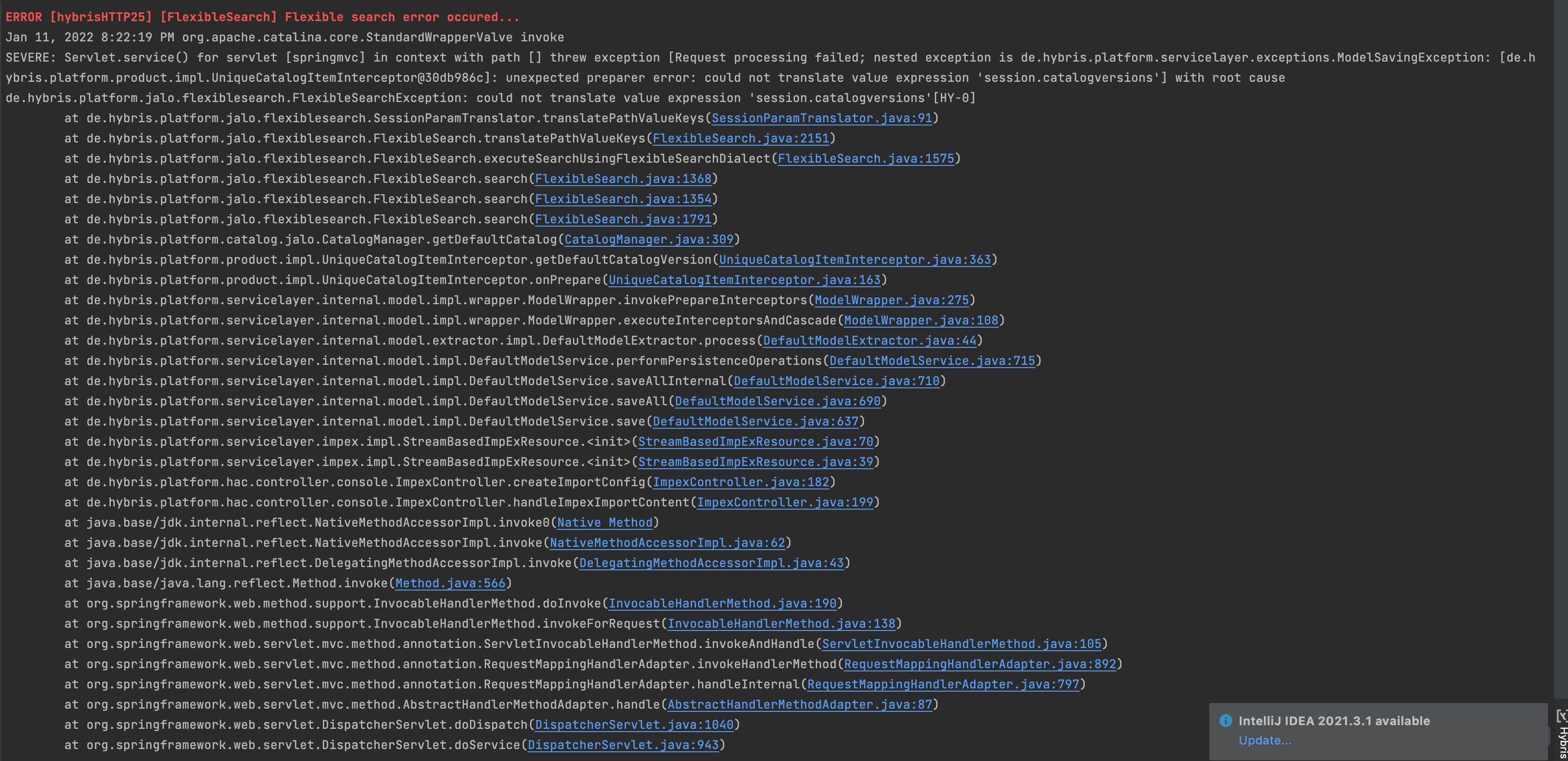 could not translate value expression 'session.catalogversions'