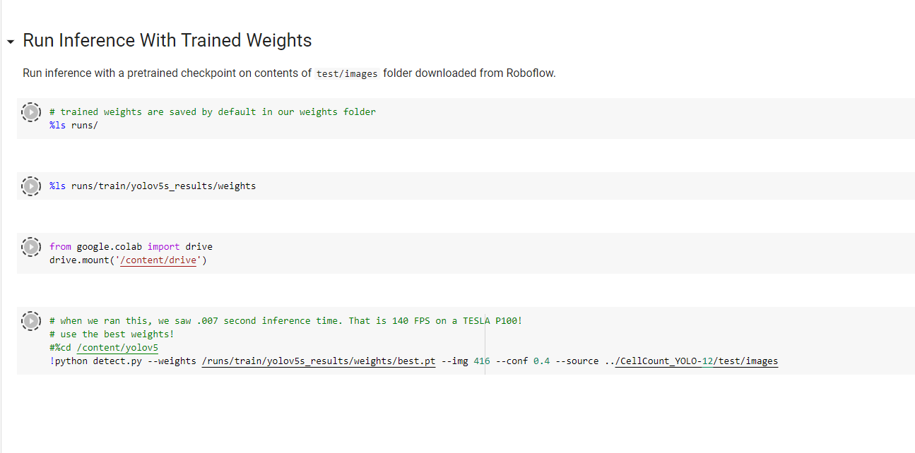!python detect.py --weights runs/train/exp/weights/best.pt --img 416 --conf 0.1 **--source {dataset. Location}/test/images**因此,您必须复制要在{dataset中测试的图像。位置}/测试/图像或指示另一个源。