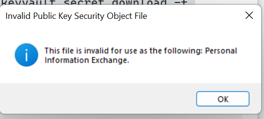 我使用CLI从Azure Key Vault下载了一个PFX文件: