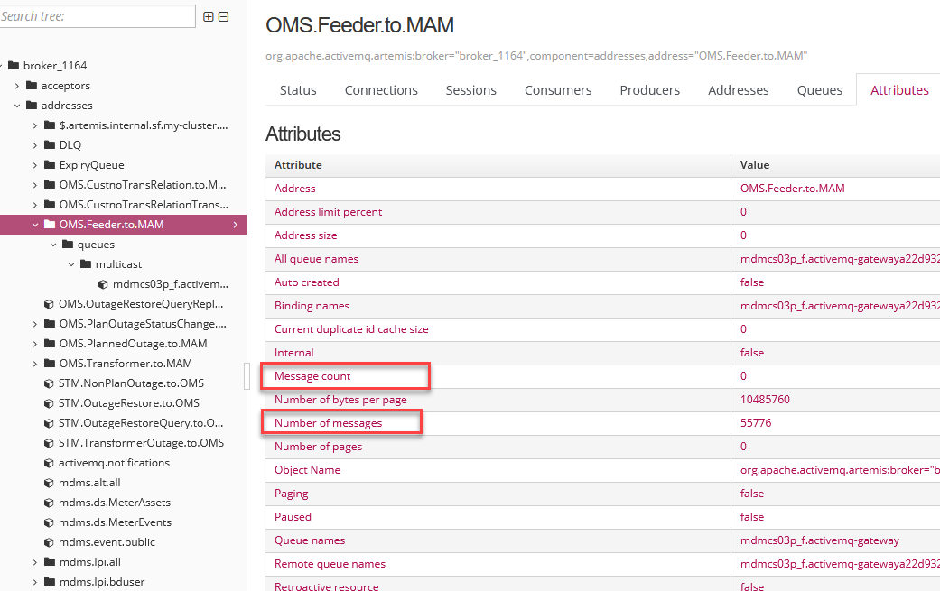 地址的属性中有两个属性。例如,如下所示。地址属性中的“消息计数”和“消息数量”有什么区别?