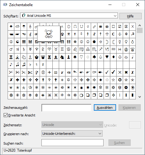 }第一个结果是中文字形,直到我意识到字形索引与Unicode代码点无关。(我使用了0x2620 ( Unicode代码点)作为字形索引。)因此,我介绍了QRawFont::glyphIndexesForString()的转换。
