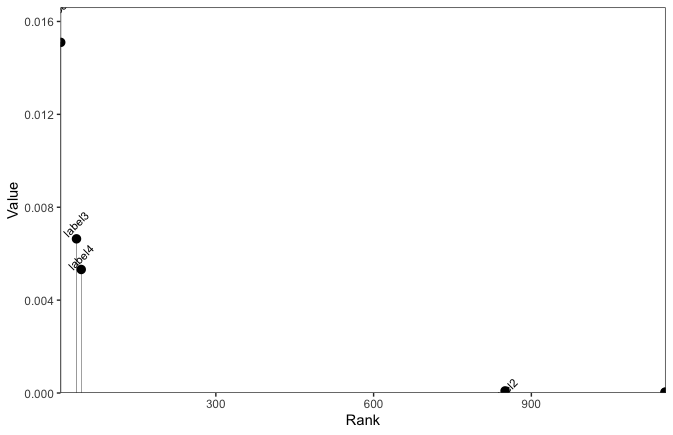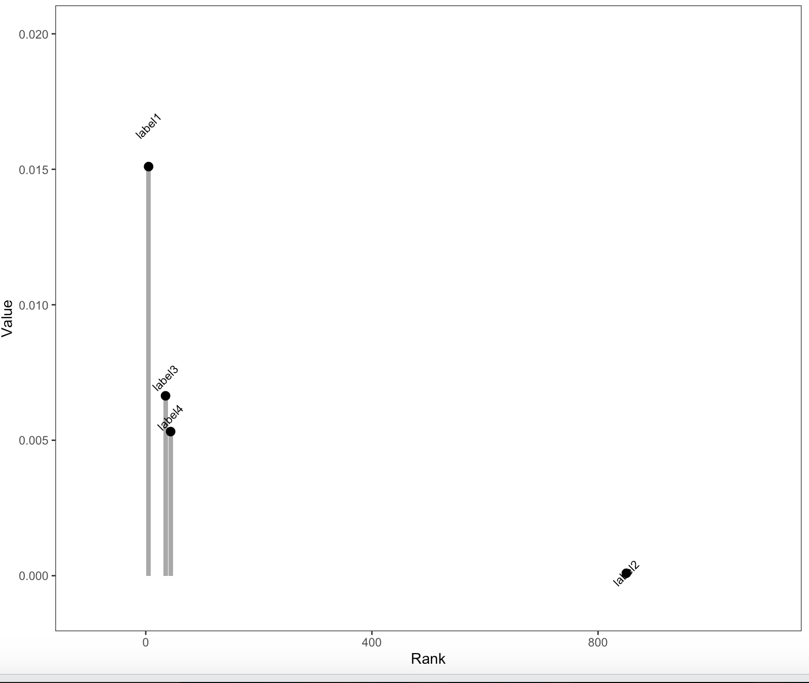 geom_pointrange(data = foo, aes(x=rank, y=value, ymin = 0, ymax = 0)) +