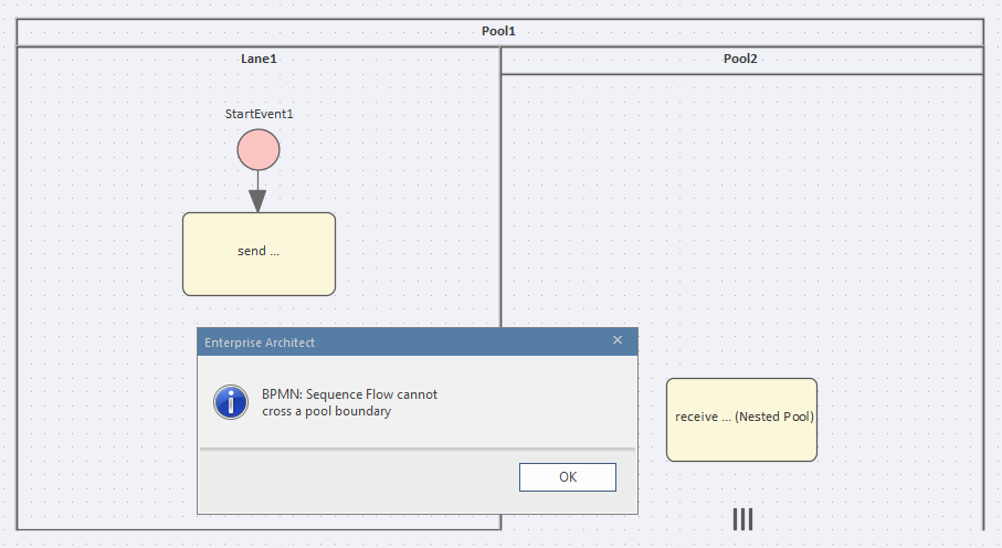 在这一点上,我不太清楚如何解释BPMN标准,但假设建模工具是正确的,不允许您在车道上设置多重性。但是,Sparx和bpmn.io都允许您嵌套元素(参见带有嵌套通道的示例bpmn.io论坛上的这个帖子 )。