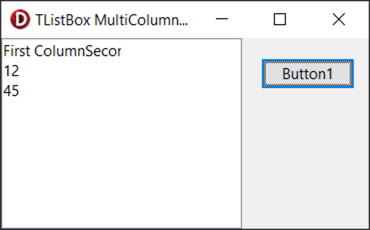 ListBox1.Items.Add('4'^I'5');额外信息:您可能想知道为什么在这里使用^I。因为我是英文字母表中的第九个字母,所以^I等于#9,也就是制表字符。