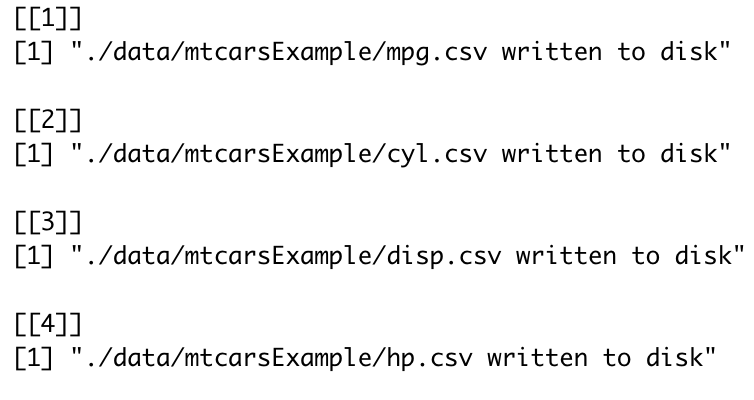 },"mtcars")当lapply()函数通过数据帧中的列工作时,它将文件名写入输出列表。