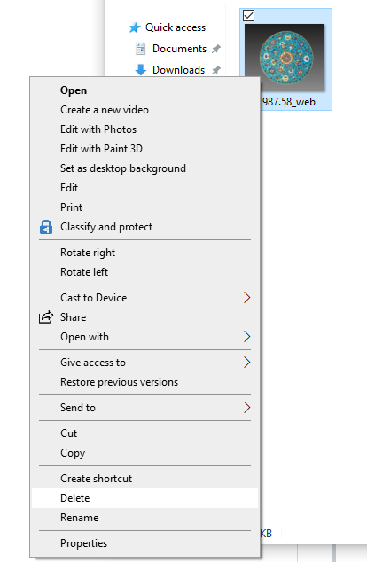 在windows中,您可以将项目拖到垃圾图标上,也可以右击它并选择“Delete”。上下文菜单是键盘可访问的。