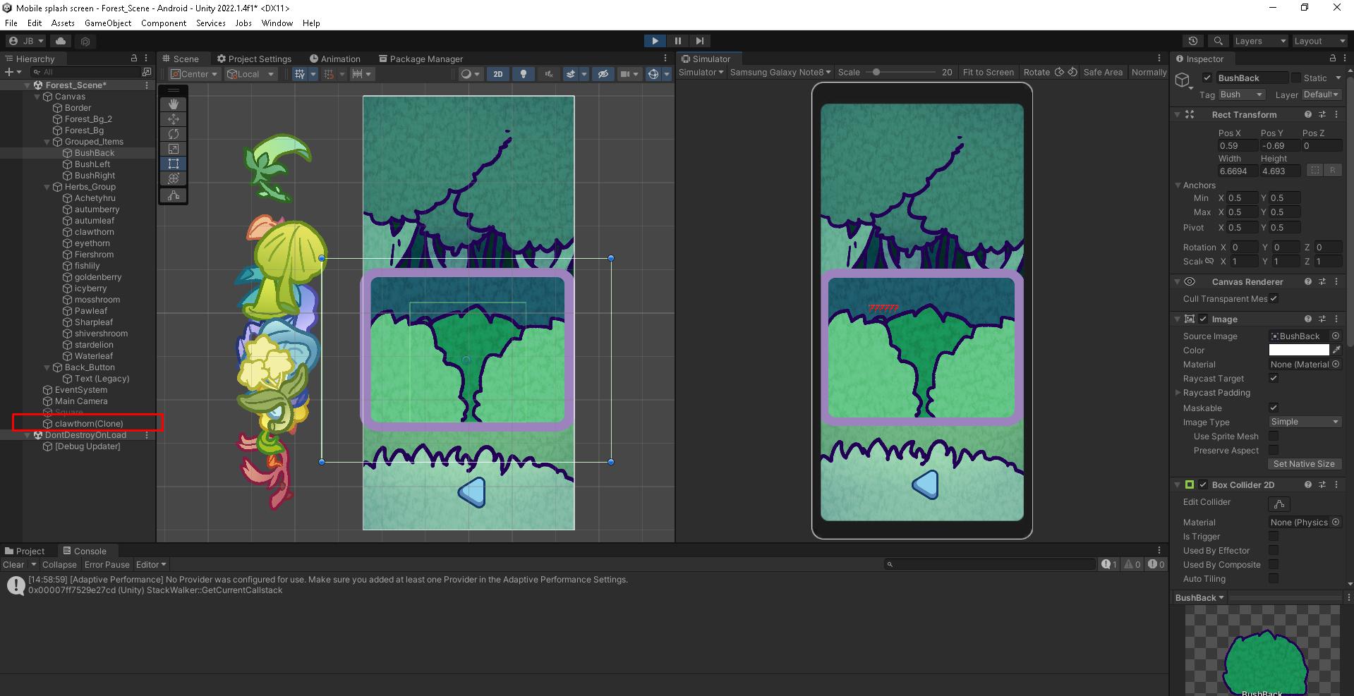 我有一个脚本,我点击并从灌木丛中产生对象。问题是当项目被生成时,在传家宝中显示,因为(克隆人)不能在游戏模式中显示,所以在任何地方都看不到它。