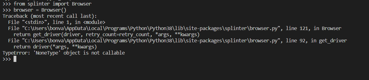 browser = Browser()我在不同的环境和不同的文件上做了同样的事情,但是我总是得到以下信息: