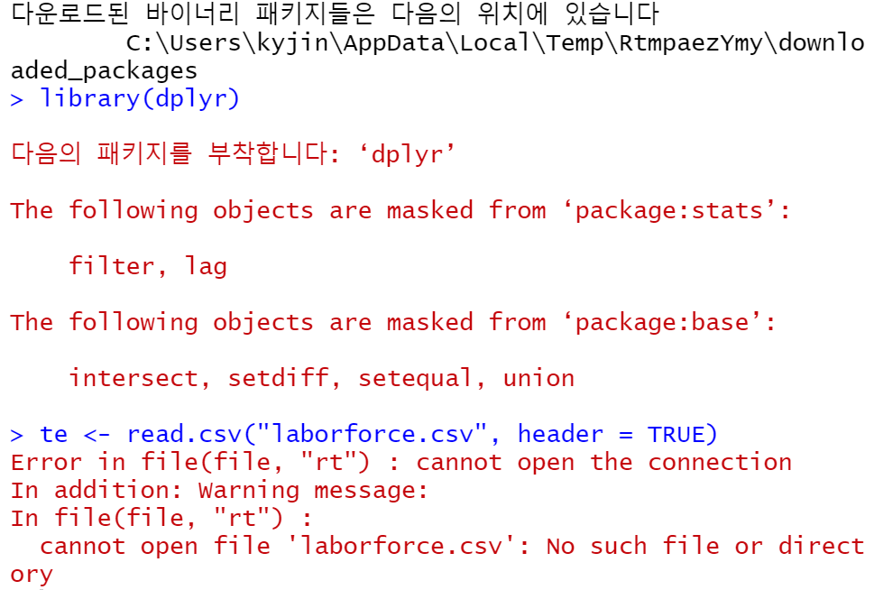 我试着用setwd()改变位置。我可以使用ggplot2软件包和这个软件包工作良好。所以我认为我的com不能从dplyr包中加载csv文件。下面的图片是我的控制台图片。我该去哪修?