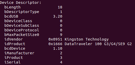 为此,我使用libusb库,但我获得了idVendor号和idProduct号。如何使金斯敦科技成为idVendor的一部分?