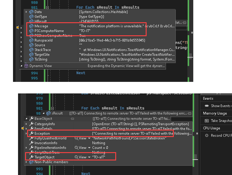 For Each sResult In sResults但是,我无法实际获得代码中存储在这个变量中的任何值,我尝试使用TryCast将其转换为PSObject,但仍然感到困惑。