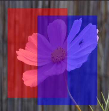 换句话说,我想画出一组元素,然后一次性调整它们的alpha/不透明度。在上面的例子中,我希望蓝色和红色的重叠部分显示为蓝色,因为蓝色的矩形是第二幅。
