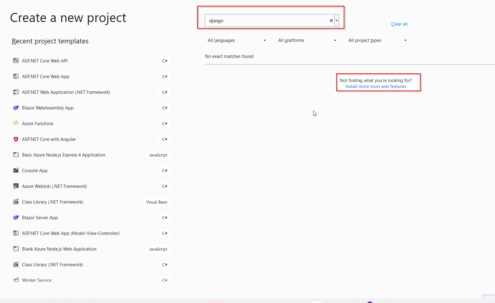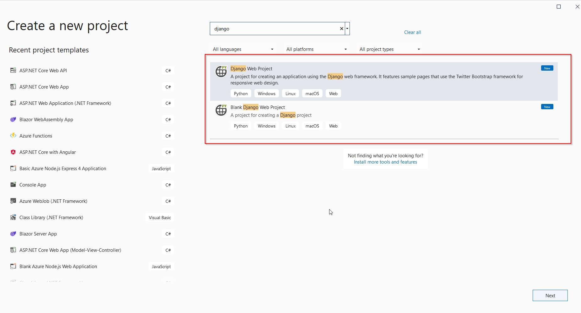 但是,对于Azure,没有Python项目模板对我是不可用的。我只有C#和(经典的和扩展的)。
