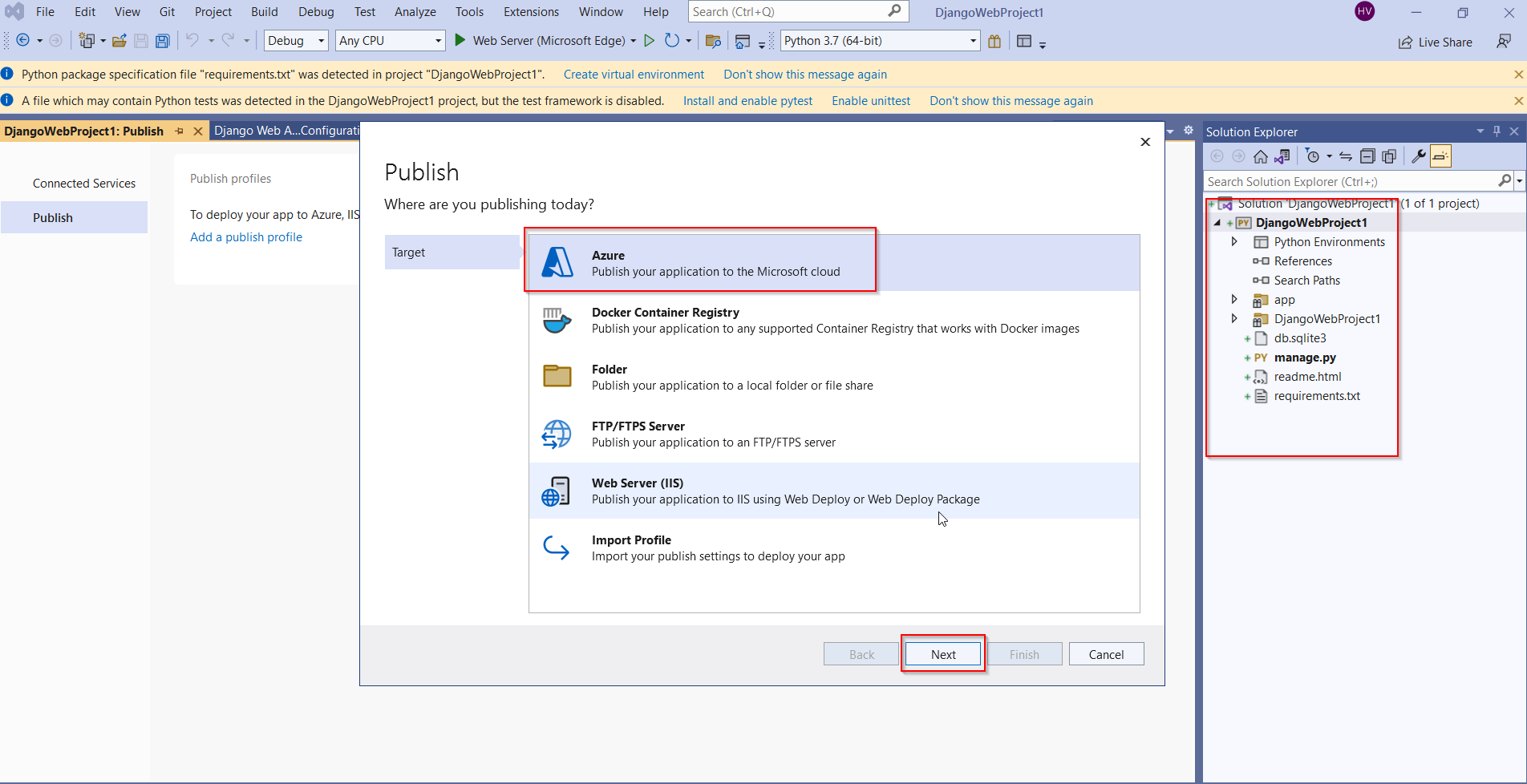 我正在尝试使用Visual 2022将Python应用程序部署到。