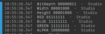 end这是我正在使用的代码,子字符串函数似乎适用于位深度、宽度和高度,尽管当读取颜色值时,它似乎抵消了一吨,我不知道它是什么: