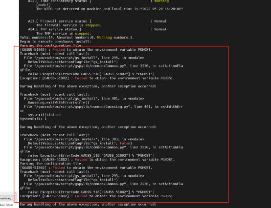 安装的openGauss数据库总是错误的,这是由下图提示的:无法获得环境变量PGHOST。
