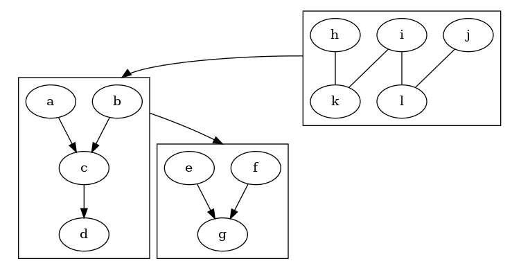 b->f [ltail=clusterA, lhead=clusterB];