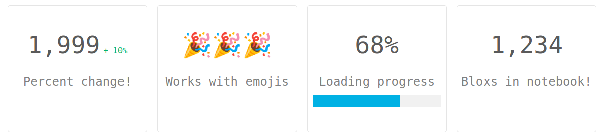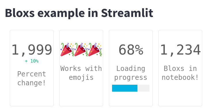 布洛克斯是一个简单的python包,它帮助您以一种吸引人的方式(以块形式)显示信息。完美的建立仪表板,报告和应用程序在笔记本上。 它与木星笔记本,谷歌Colab,Deepnote,Kaggle笔记本一起工作。