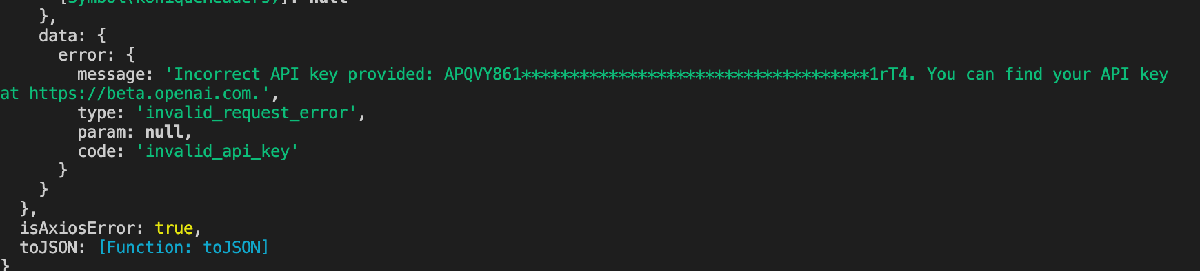 });如果我console.log(process.env.OPENAI_API_KEY),它会打印正确的API键。那我在这里做错什么了?