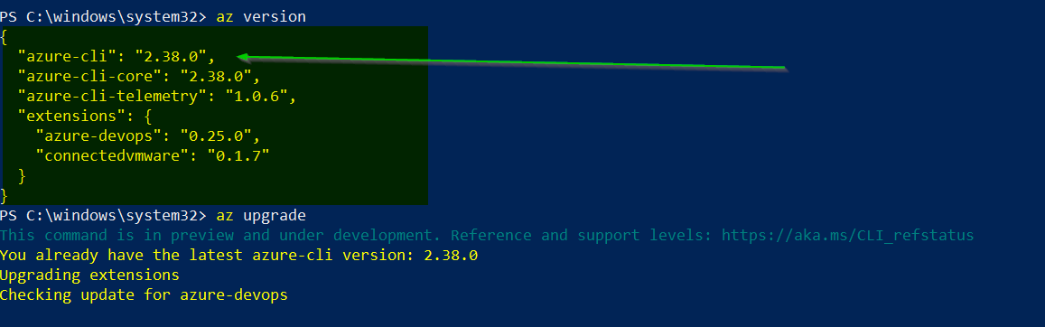 要检查和升级cli,我们可以使用下面的cmdlts