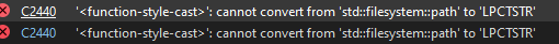 我知道它需要一个LPCTSTR值。但是,我目前提供的路径(来自std::filesystem::directory_entry -> std::->::path)->LPCTSTR不被接受。