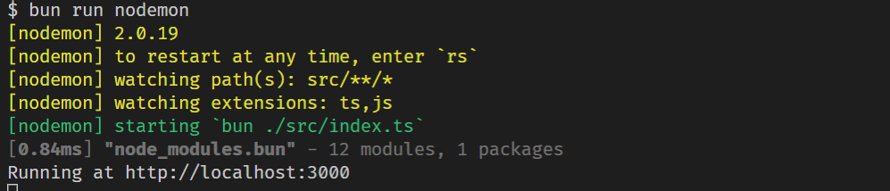 bun dev然后服务器显示以下消息: