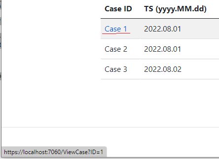 在下面的代码中,我可以单击表中的"Case ID“,但这会在实际文本周围留下一些不可点击的区域。基本上,我希望能够简单地选择行并在ViewCase中传递数据库查询的@sc.ID,我希望最终用户点击“类别”(以及未来的几个列),而不必定义每个标记。