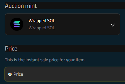 This will be the quote mint for your auction.