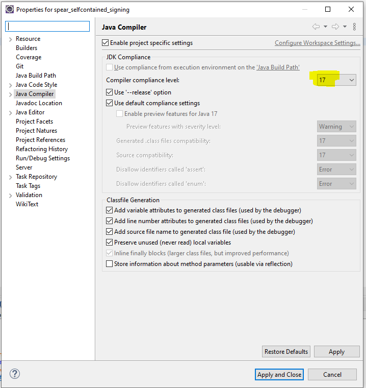 Eclipse在更改编译器遵从性级别后不再显示错误。