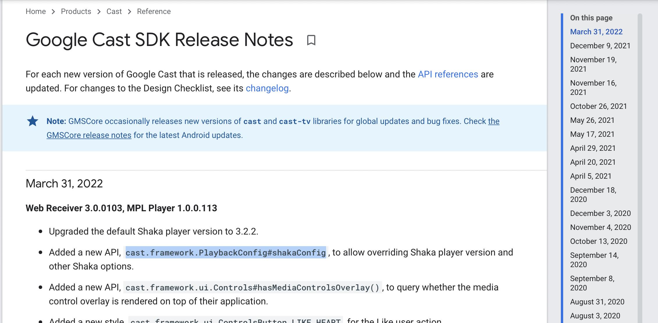 谷歌发布的2022年3月31日具有覆盖沙卡播放器版本的能力(如发布说明中所述:),但它没有提供文档如何设置沙卡播放器版本。
