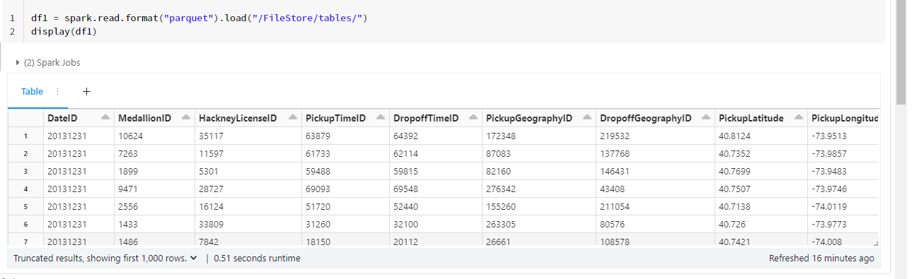 df1 = spark.read.format("parquet").load("/FileStore/tables/")