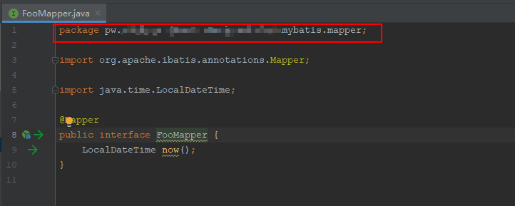 org.apache.ibatis.binding.BindingException: Invalid bound statement (not found): io.springcloud.mybatis.mapper.FooMapper.now
