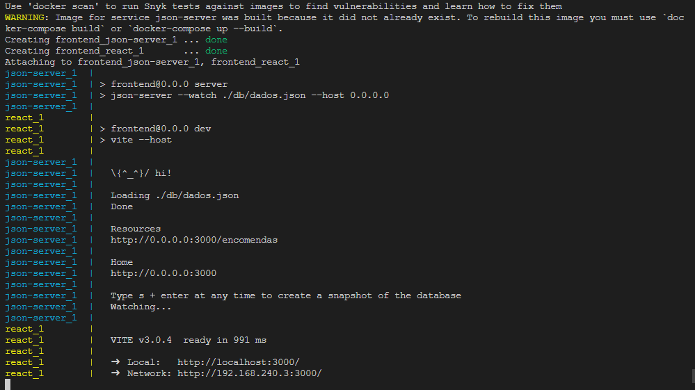 command: npm run server当我运行命令docker时,我的react应用程序可以工作,但是json服务器在终端中显示了这一点: