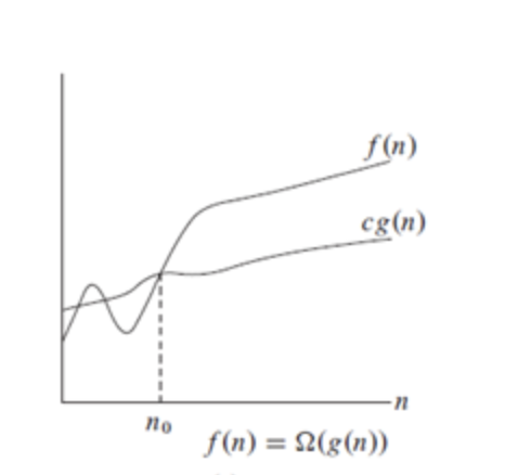 随着n的增加,f(n)的生长速度并不比g(n)慢。换句话说,g(n)是f(n)上的渐近下界。