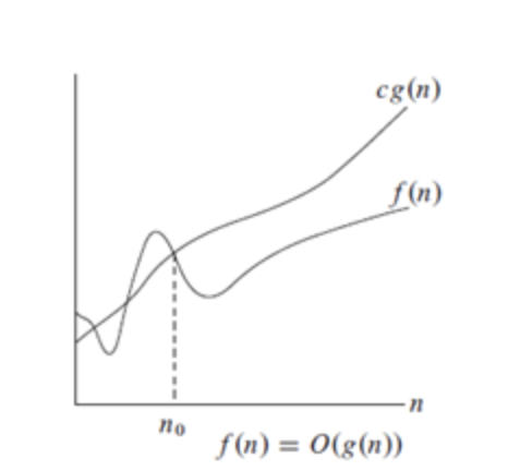 随着n的增加,f (n)的生长速度不快于g(n)。换句话说,g(n)是f (n)上的渐近上界。
