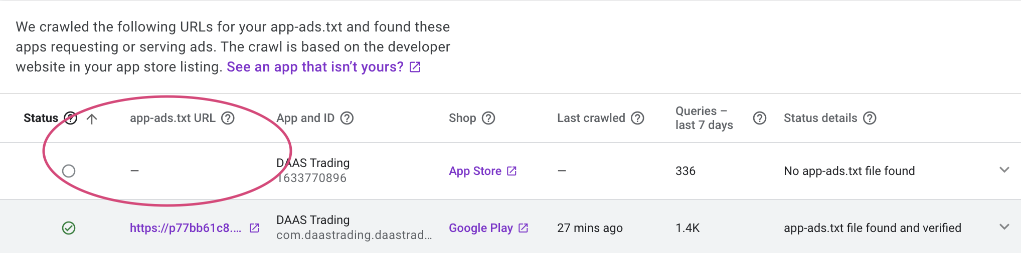 我意识到我的google应用程序帐户没有App-ads.txtURL